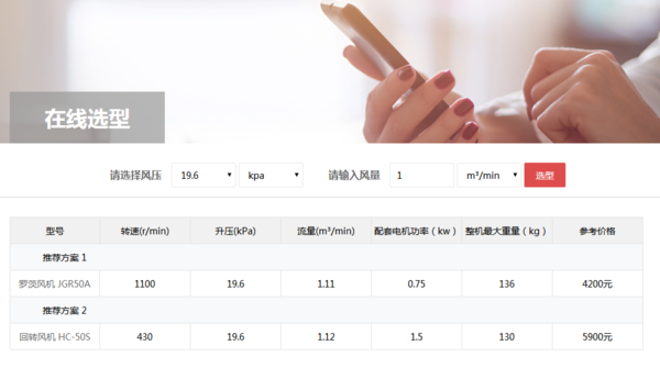 此外,還可以通過風機選型系統(tǒng)查詢回轉(zhuǎn)風機價格,如下圖客戶僅需輸入風量、選擇風壓,就可以方便、快速、準確、可靠地進行羅茨鼓風機、回轉(zhuǎn)式鼓風機等各類容積式風機的選型和價格查詢工作。風機選型系統(tǒng)地址:http://www.yztour.cn/search.php
