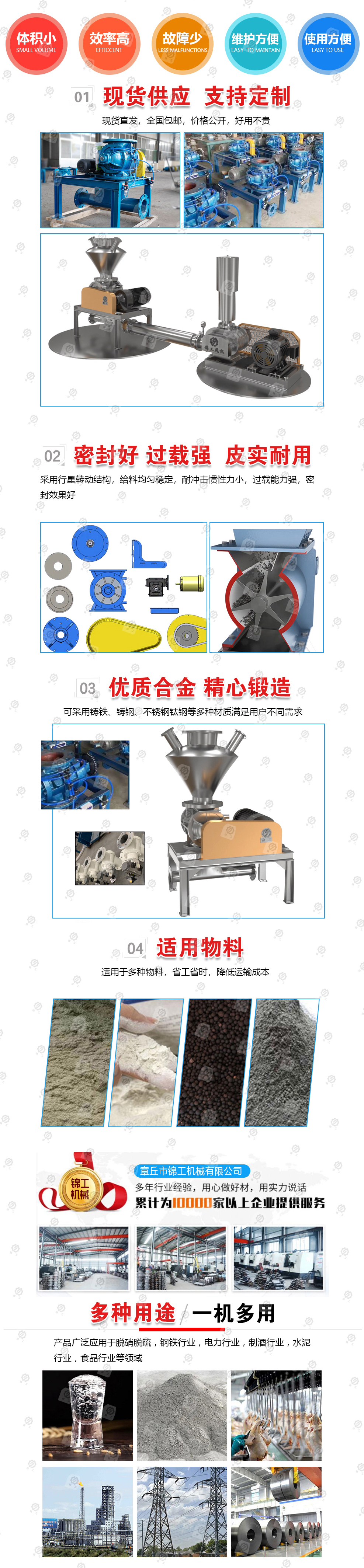 氣力輸送有多種工作形式,各有優(yōu)缺點(diǎn),在工業(yè)生產(chǎn)用戶可根據(jù)實(shí)際輸送物體的特性和要求,選擇合適的輸送方式。