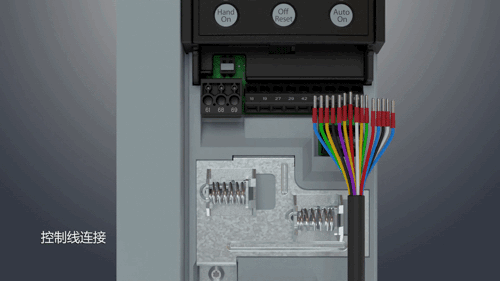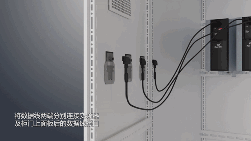 2、將數據線兩端分別連接變頻器及柜門上面板后的數據線接口